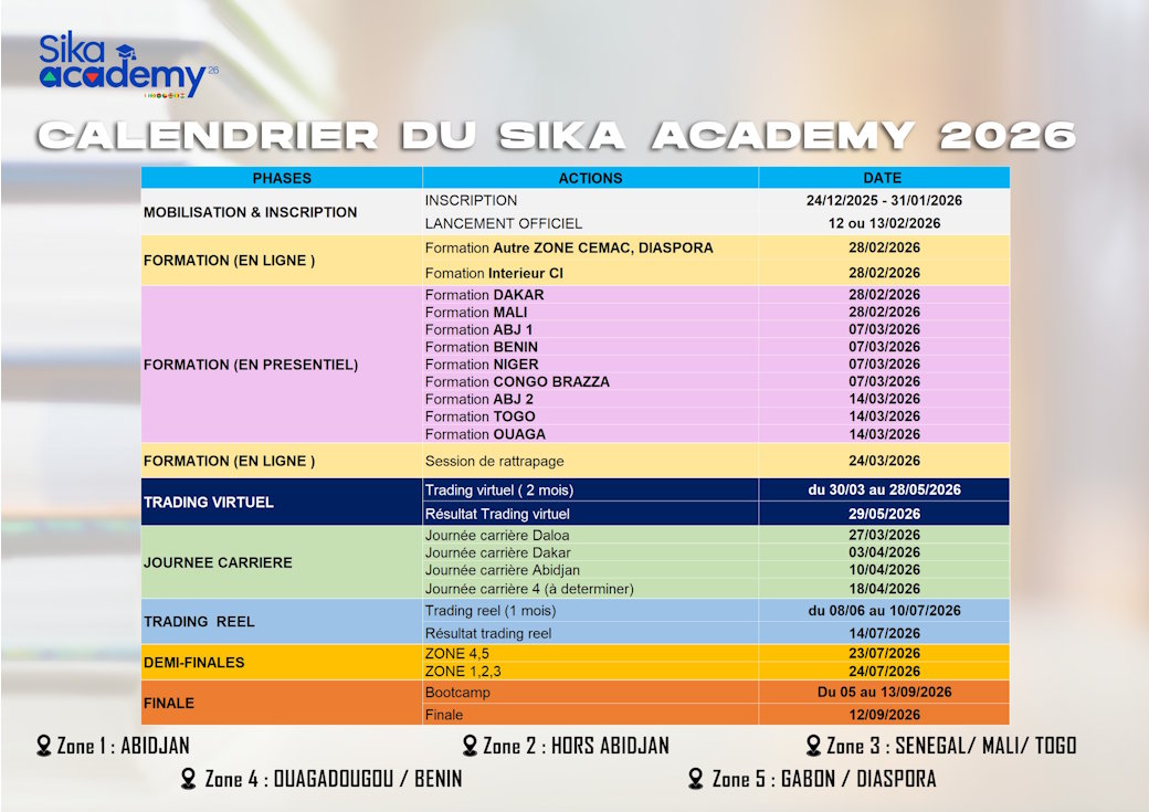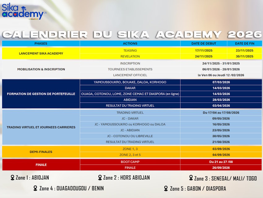 La phase de trading virtuel du Sika Academy est une simulation boursière où chaque équipe reçoit une enveloppe virtuelle de 20 millions de francs CFA à investir dans divers actifs financiers, tels que des actions, des obligations et d'autres instruments.
