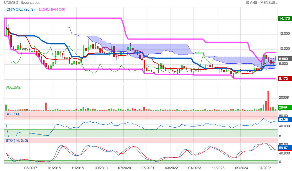 conclusion sur le Court , moyen et LT tout est bon pour Unimed , sachant que le cour à l'annonce du resultat l'année derniere etait autour de 9,50