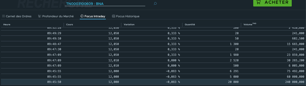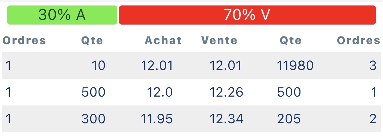 l'offre à 12dt absorbée, l'offre à 12.05 absorbée, on passe à 12.1 sans aucun repli, de petites hausses mais sures