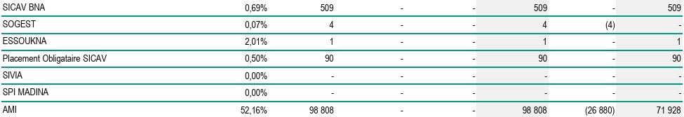 La filiale de la BNA, la SICAR Invest détient 6 059 269 titres dégageant eux aussi une plus value de 4,1 million DT