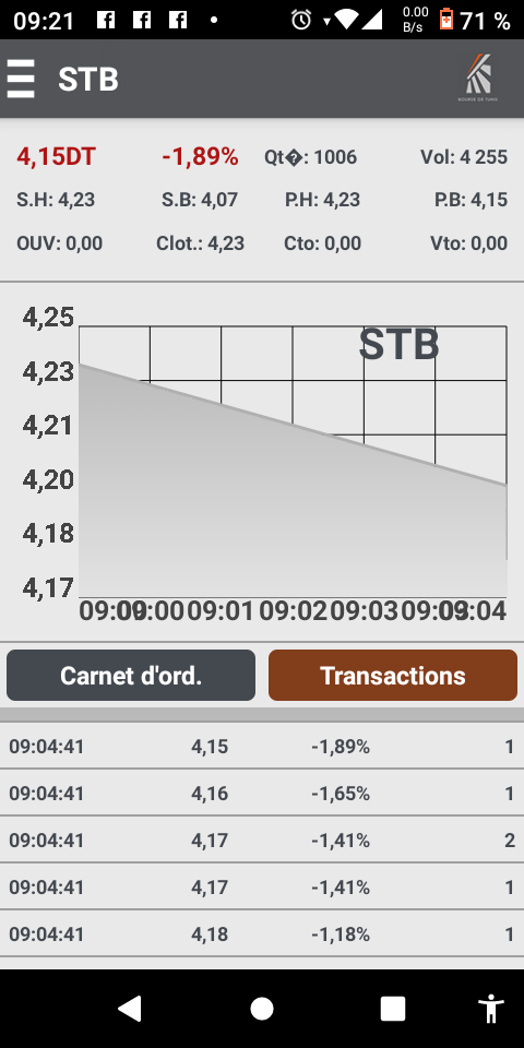 Voilà avec cette exemple spontanée simple réel tu comprendra que des Mafias des Manipulateurs et des influenceurs n'aime pas pour les moments STB grimpe et se corrige analyser ses ventes de 1 titre et tu comprendra que STB reziiik bilique et que stb finances n'est pas la pour suivre stb ...