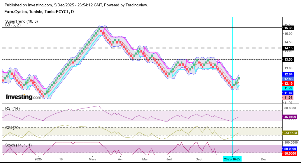 Eurocycle a 12,5dt winchallah elle distribuera 0,350dt dividendes en 2026 et sotetel votre expert naoujas n'aime pas pour un nominal 5dt et avec un cours de 5,050dt mais qui distribuera +0,500 dt dividendes ...