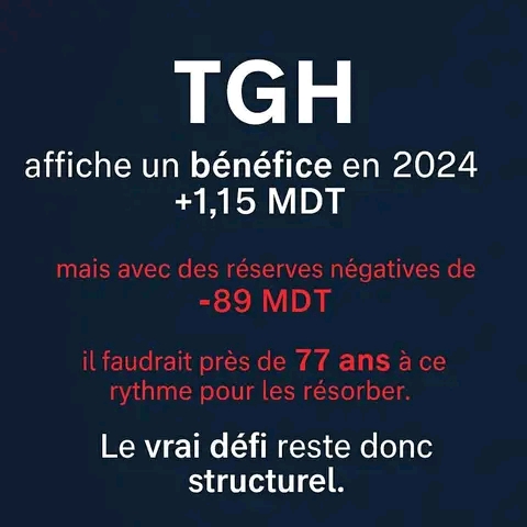 Même avec la cession du terrain Montfleury (bénéfice 50 MDT), les pertes cumulées ne seraient réduites qu’à –39 MDT. À ce rythme de 1,15 MDT/an, il faudrait encore environ 34 ans pour les absorbés