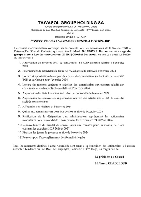 Création d’un poste de responsable communication financière et relation investisseurs rattachee a la DG de TGH