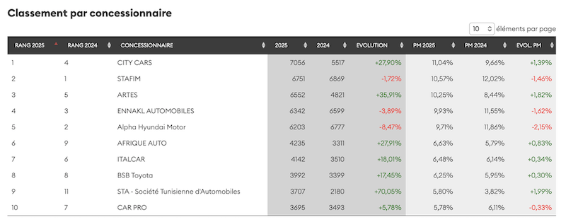 Très bonne progression de STA (+70%); ARTES (+36%); CITY CARS (+28%)