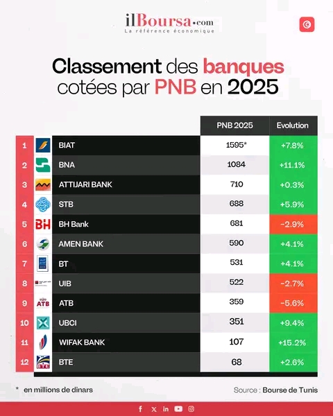 برافووو للشركة التونسية للبنك، البنك التجاري الحكومي، بنك السيادة المالية التونسية، أكبر رأس مال بنك بمساهمة الدولة التونسية والصناديق الاجتماعية...