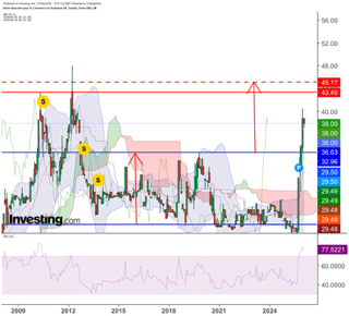 je suis d'accord, j'essayerais de renforcer sur pull back si elle vient tester 33, c'est le scénario classique, j'espère qu'elle sera au continue en 2027, le fixing c'est pénible, et c'est peut être pour cette raison que j'ai pas pris une position correcte.