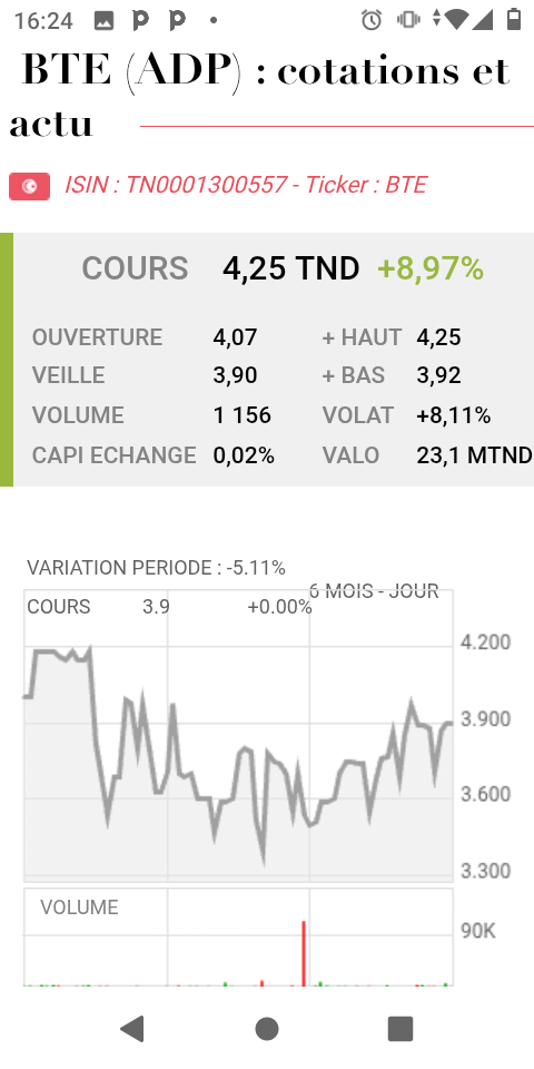Iteb sais tu que BTE a un nominal de 20 dinars l'action