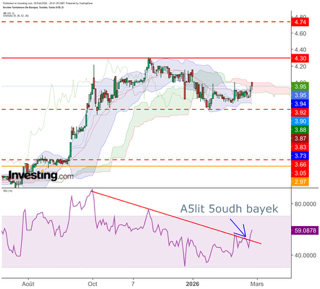 Si résultat mitigé et pas de dividende, on retombe à 4, le plus probable. Moi j'ai une petite position STB, je suis très exposé sur le bancaire, je maintien ma stratégie, je renforcé au fure et à mesure de l'évolution. Inchallah 2026 sera l'année de dėcollage.