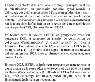 • L’activité Retel Bénin Béton devrait démarrer début 2026, contribuant à la croissance internationale.