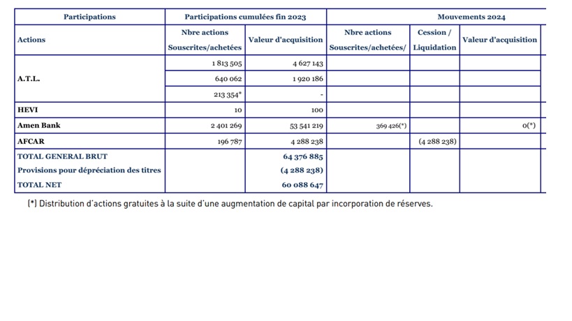 Titre ATL nombre = 2 666 921 avec un Cours d'acquisition de 2.455 dt