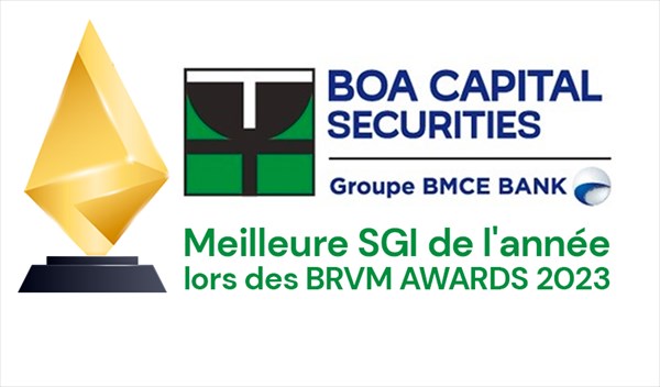 BOA Capital Securities, société de gestion et d'intermédiation (SGI) en Zone UEMOA de la Banque d'Affaires BOA Capital a remporté le prix de ‘La Société de Gestion et d'Intermédiation de l'année' à la 4ème édition des BRVM Awards qui s'est déroulée du 10 au 11 mai 2023.