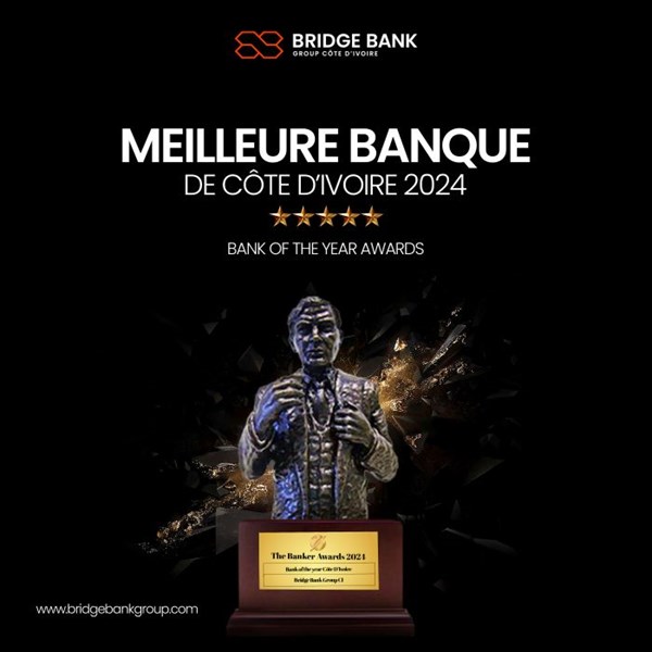 Bridge Bank Group Côte d'Ivoire a été distinguée Meilleure Banque de Côte d'Ivoire 2024 lors de la prestigieuse cérémonie des Bank of the Year Awards organisée par The Banker, ce mercredi 4 décembre. Une consécration qui vient saluer son engagement en faveur de solutions bancaires innovantes et adaptées aux besoins de ses clients, tout en plaçant ces derniers au cœur de ses priorités.