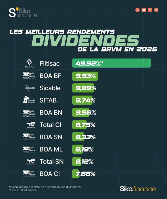 Les sociétés cotées ont redistribué 803 milliards FCFA de dividendes en 2025, contre 678 milliards FCFA en 2024, établissant un nouveau record historique.