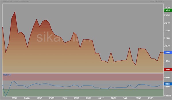 A la BRVM, Bernabé fait partie des actions qui soufflent le chaud et le froid. En effet, alors qu'elle a subi une longue traversée du désert entre 2016 et 2020 sanctionnée par une forte baisse de 93,1%, l'action Bernabé a agréablement surpris le marché fin 2021 en s'adjugeant un important gain de 262,5%.