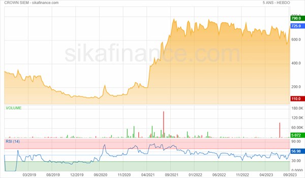 A la clôture du 20 septembre 2023, le titre Crown Siem s'échangeait à 710 FCFA, ce qui représentait une performance de 6,62% depuis le début de l'année.