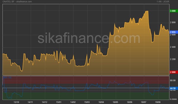 Après deux années consécutives de baisse, l'action Onatel BF semble retrouver la faveur des investisseurs au regard de sa performance de 16,45% enregistrée depuis le début de l'année. Le cours de l'action est ainsi passé de 2 280 FCFA à 2 655 FCFA à la clôture du 11 septembre 2024.