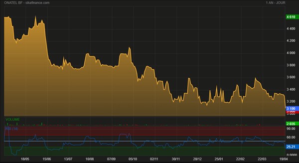 Depuis le début de l'année, l'action Oantel affiche une évolution quasi-stable avec une contreperformance de 4,38%, dans le sillage de l'année 2022 qui s'est soldé par une moins-value de 18,88%. Une évolution du titre qui cadre avec les performances que l'opérateur affiche ces derniers mois.