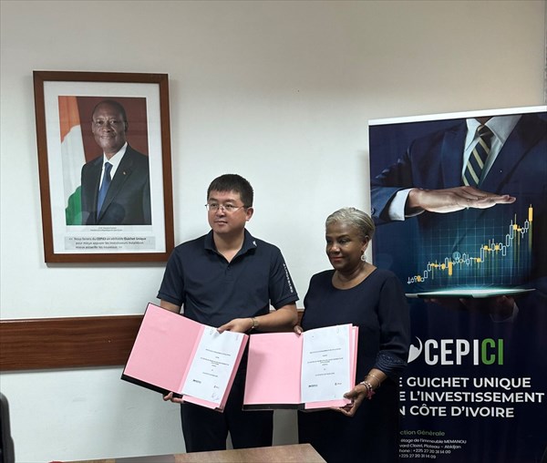 La signature du partenariat s'est déroulée ce 19 juin à Abidjan, capitale économique de la Côte d'Ivoire, entre Solange Amichia, directrice générale du CEPICI, et Qi Shijin, représentant le consortium composé de Chinese Commodity City, Transn, Alibaba, Zmeterport et Cosco Shipping & Logistics.