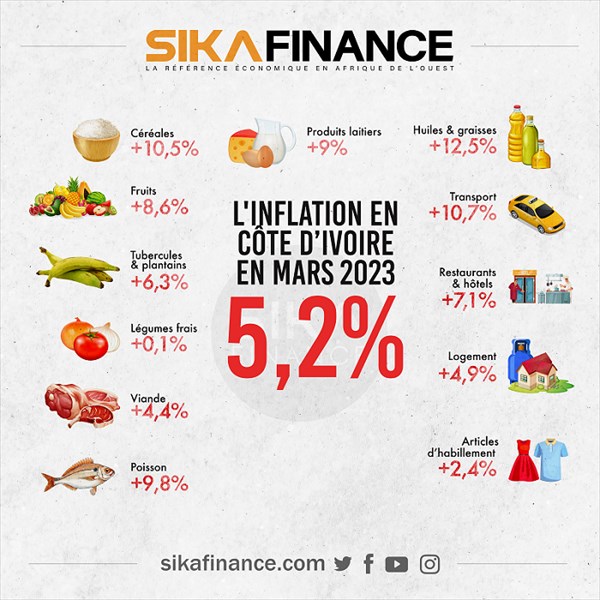 Pour sa part, l'inflation en moyenne annuelle, qui permet de situer l'évolution des prix par rapport aux critères de convergence communautaire, est ressortie à 5,2% en mars 2023, soit quasiment le même niveau que depuis septembre 2022.