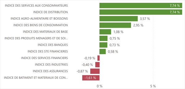 - Services aux consommateurs et Distribution : Les grands gagnants de la semaine avec une hausse de 7,74%.