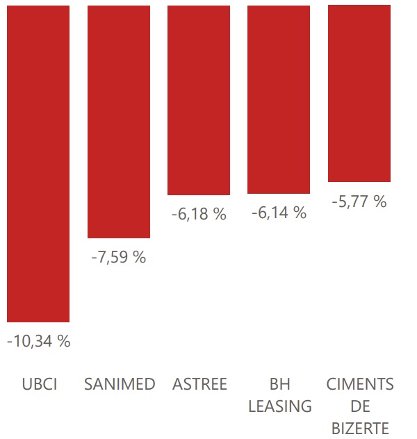 Le palmarès de la semaine est dominé par la BTE (ADP) qui signe la plus forte progression avec un bond spectaculaire de 23,85%. Elle est suivie par le secteur automobile et la distribution avec City Cars (+15,56%) et ARTES (+12,26%). À l'inverse, l'UBCI enregistre la plus forte baisse de la semaine, cédant 10,34%.