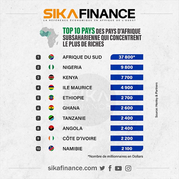Grâce à cette évolution, la Côte d'Ivoire, en termes d'ordre, se classe à la 9ème place des pays d'Afrique subsaharienne concentrant le plus grand nombre de millionnaires en dollars et le seul de la zone franc CFA figurant dans cette liste.