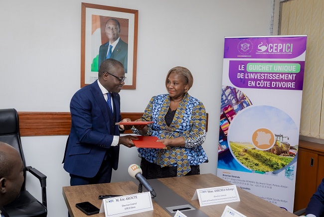Le Centre de Promotion des Investissements en Côte d'Ivoire (CEPICI) et l'Agence de Promotion des Investissements et des Exportations du Bénin (APIEx) ont procédé, ce mercredi 21 janvier 2026 à Abidjan, à la signature d'un Mémorandum d'Entente (MoU) visant à établir un cadre formel de coopération pour la promotion et la facilitation des investissements entre la Côte d'Ivoire et le Bénin.