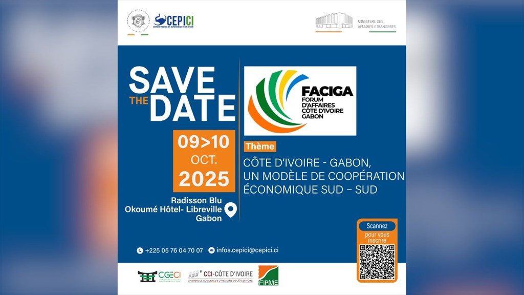 La 1ère édition du Forum d'Affaires Côte d'Ivoire-Gabon se tiendra les 09 et 10 octobre 2025 au Radisson Blu Okoumé Hôtel, à Libreville, au Gabon.
