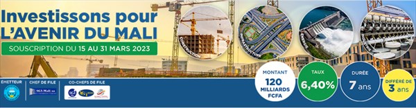 L'objectif de cette opération est d'assurer, le financement d'infrastructures de développement, prévue au Budget 2023 de l'Etat du Mali.