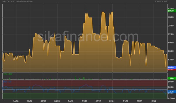 Comportement de l'action Nei-Ceda CI à la BRVM