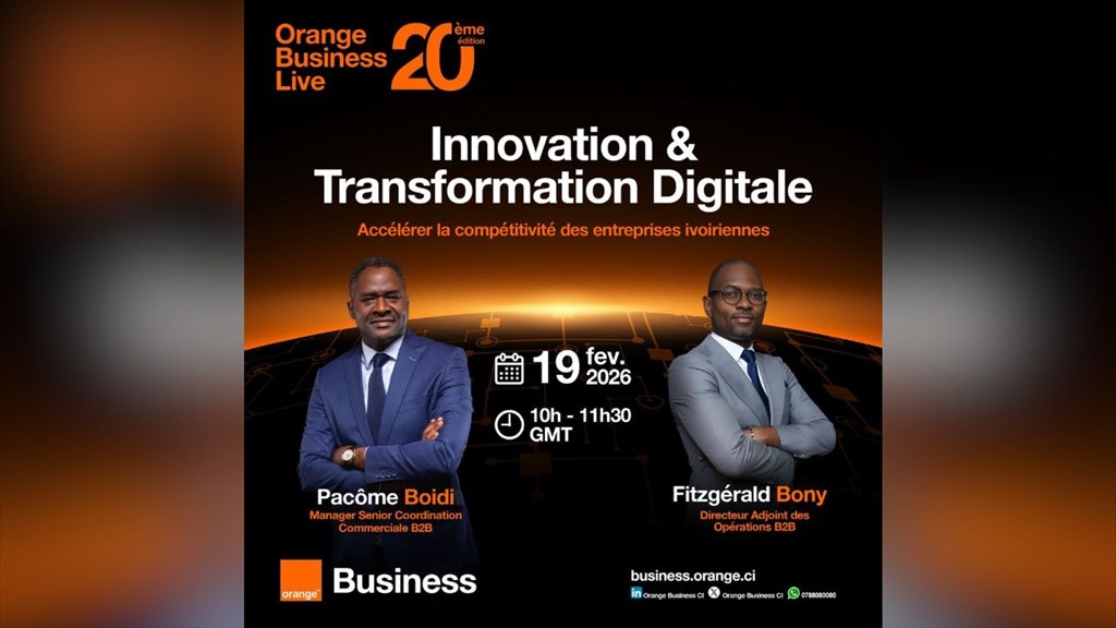 Pour sa 20ᵉ session, l'Orange Business Live se tiendra ce 19 février 2026 à partir de 10h à l'auditorium du siège d'Orange Côte d'Ivoire, réunissant dirigeants, directeurs des systèmes d'information et partenaires stratégiques. Avec un format hybride associant présence physique et diffusion en ligne, cette plateforme d'échanges vise à rapprocher les équipes d'Orange Business & Broadband de leurs clients et à partager les orientations technologiques du groupe.