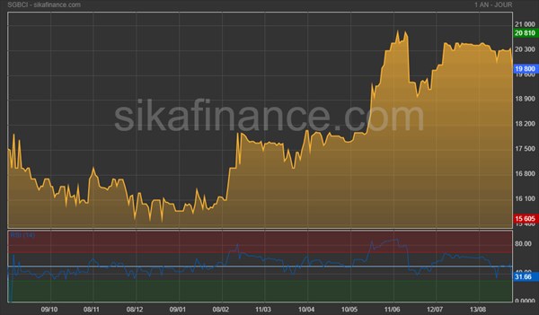 L'action Société Générale CI, qui avait atteint son plus haut niveau (à 20 810 FCFA) à la date du 20 juin, affiche une légère correction en raison des prises de profits des investisseurs pour s'établir à 19 800 FCFA à la clôture du 05 septembre 2024. Malgré ce repli, le titre enregistre une performance de 23,36% depuis le début de l'année.