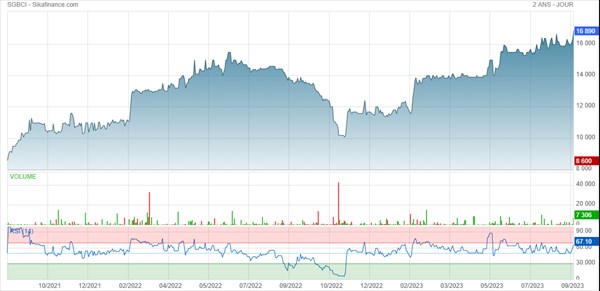 Depuis le début de l'année, l'action Société Générale CI a enregistré une plus-value de 40,59% en se situant à 16 315 FCFA à la clôture du 6 septembre. L'action constitue ainsi la 2e meilleure performance de l'année à la BRVM. Avec ces bons résultats, tout porte à croire que l'action devrait poursuite sa dynamique de croissance.