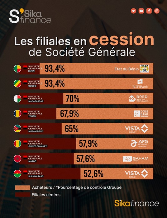 Société Générale Sénégal est l'autre grande filiale dont le groupe bancaire devrait se séparer. Actif sur un marché dont il dispute âprement le leadership avec la CBAO, filiale du marocain Attijariwafa bank, l'établissement y est un acteur historique en activité depuis 1962. Elle s'impose comme la deuxième filiale subsaharienne la plus rentable après la Côte d'Ivoire, avec un PNB de 82,6 milliards FCFA (126 millions d'euros) pour un bénéfice dépassant les 25 milliards FCFA (38,1 millions d'euros) en 2023.