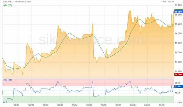L'action Sonatel évolue depuis le début de l'année dans une dynamique haussière, atteignant ses plus hauts niveaux depuis décembre 2023 avec une plus-value de 11,51% au cours de 16 950 FCFA.
